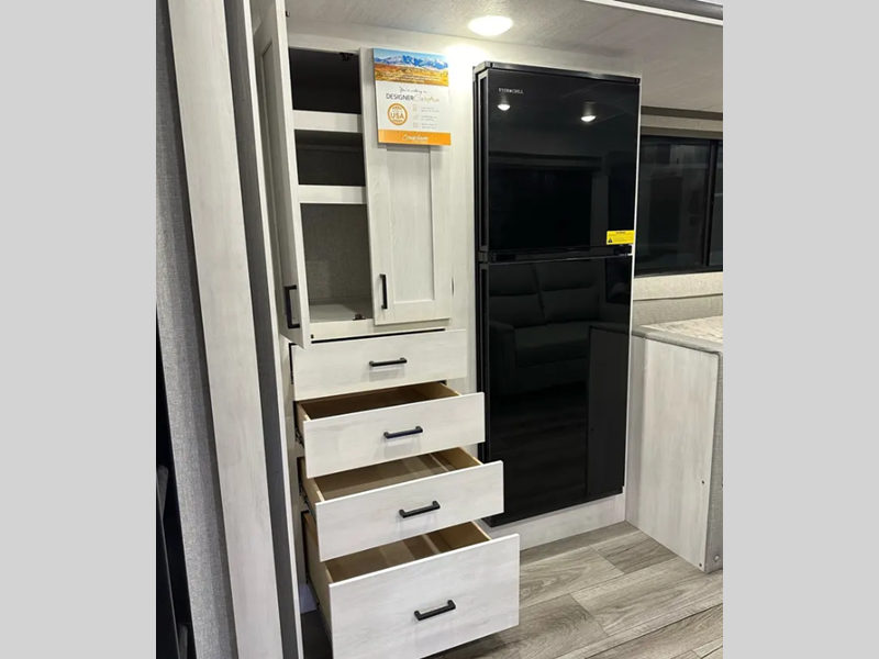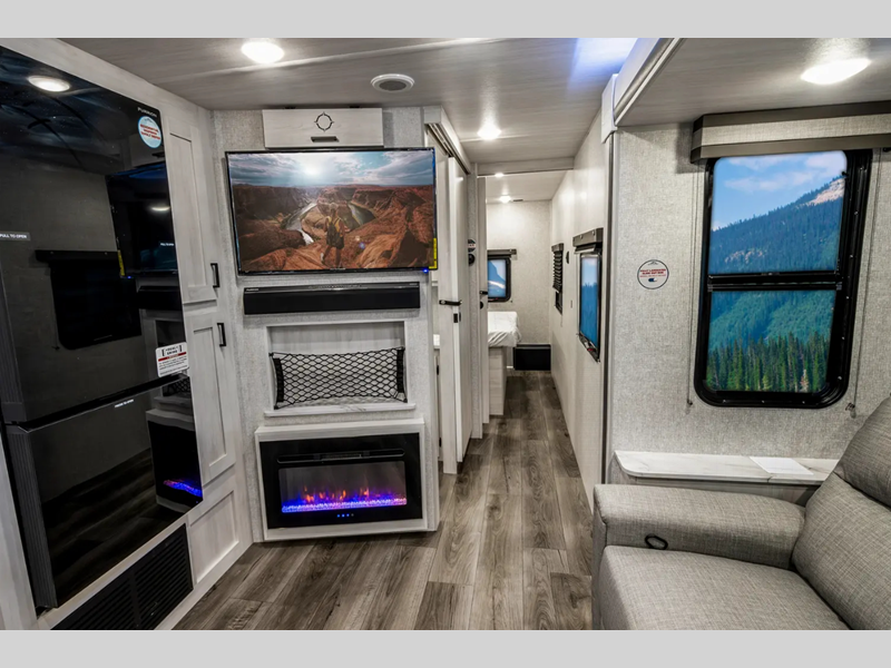 Sleeps 8 Slides 1 Length 38 ft 1 in Ext Width 8 ft Ext Height 11 ft 2 in Hitch Weight 935 lbs GVWR 11335 lbs Dry Weight 7788 lbs Cargo Capacity 3547 lbs Fresh Water Capacity 53 gals Grey Water Capacity 60 gals Black Water Capacity 30 gals Furnace BTU 35000 btu Number Of Bunks 1 Available Beds Queen Refrigerator Type 12V Residential Inspired Refrigerator Size 10.7 cu ft Cooktop Burners 3 Number of Awnings 1 Water Heater Type On Demand Tankless AC BTU 15000 btu Awning Info 21' Power Axle Count 2 Shower Type Standard Electrical Service 50 amp Similar Floorplans