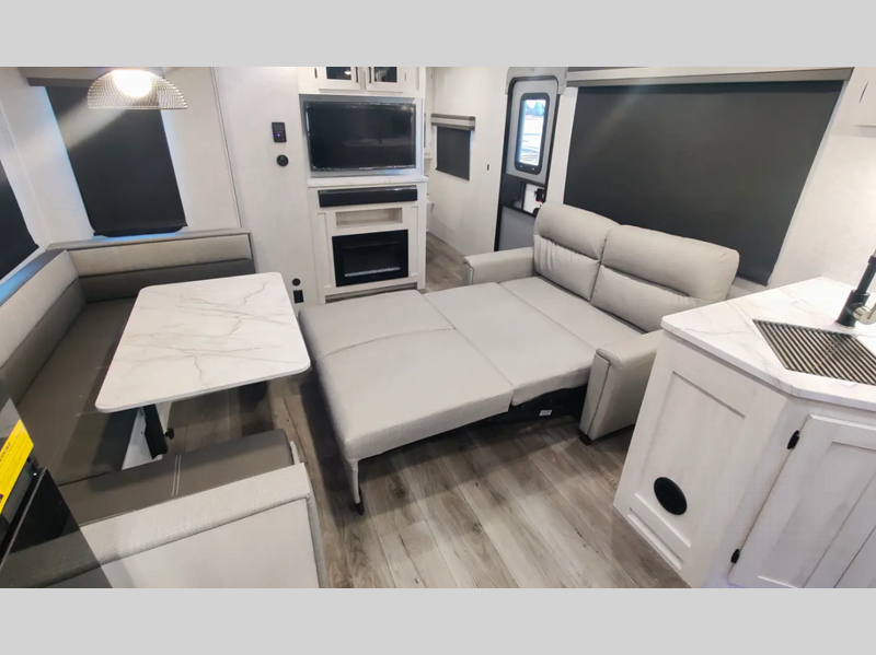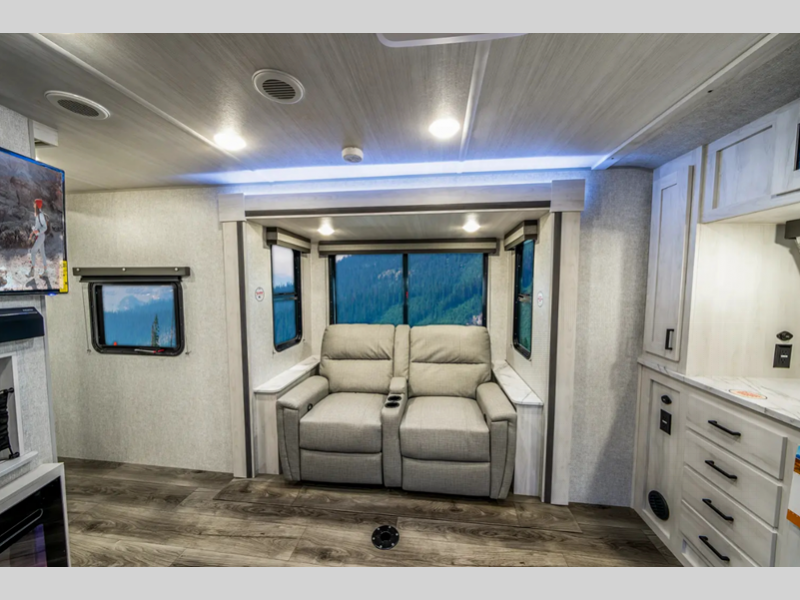 Sleeps 4 Slides 2 Length 35 ft 10 in Ext Width 8 ft Ext Height 11 ft 2 in Hitch Weight 880 lbs GVWR 11280 lbs Dry Weight 7708 lbs Cargo Capacity 3572 lbs Fresh Water Capacity 53 gals Grey Water Capacity 60 gals Black Water Capacity 30 gals Furnace BTU 35000 btu Available Beds Queen Refrigerator Type 12V Residential Inspired Refrigerator Size 10.7 cu ft Cooktop Burners 3 Number of Awnings 1 Water Heater Type On Demand Tankless AC BTU 15000 btu Awning Info 21' Power Axle Count 2 Shower Type Radius Electrical Service 50 amp Similar Floorplans