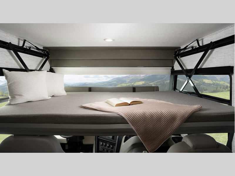 - Drop-down overhead bunk in cab area