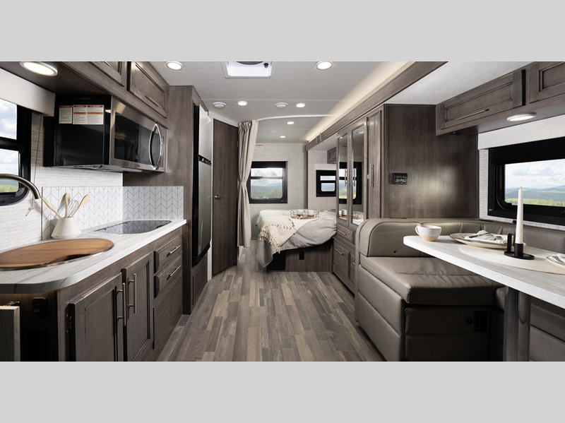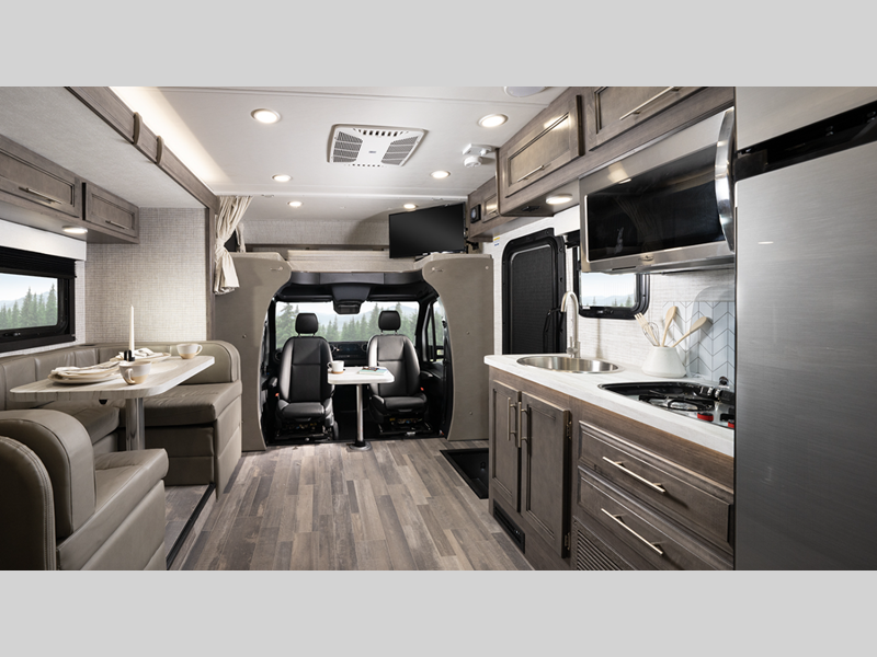 The durable chassis features an updated 2.0L inline 4-cylinder twin turbo diesel engine with 211 HP and 332 ft. lb. torque for more power, and the one-piece, seamless fiberglass front cap will add years of use to your unit. You will find the drive easier than ever with backup and side-view cameras, plus a 7" integrated Mercedes-Benz MBUX infotainment center. Each model also includes pleated blackout shades, LED-lit pressed countertops, hardwood cabinet doors and drawer fronts, and many more interior comforts!