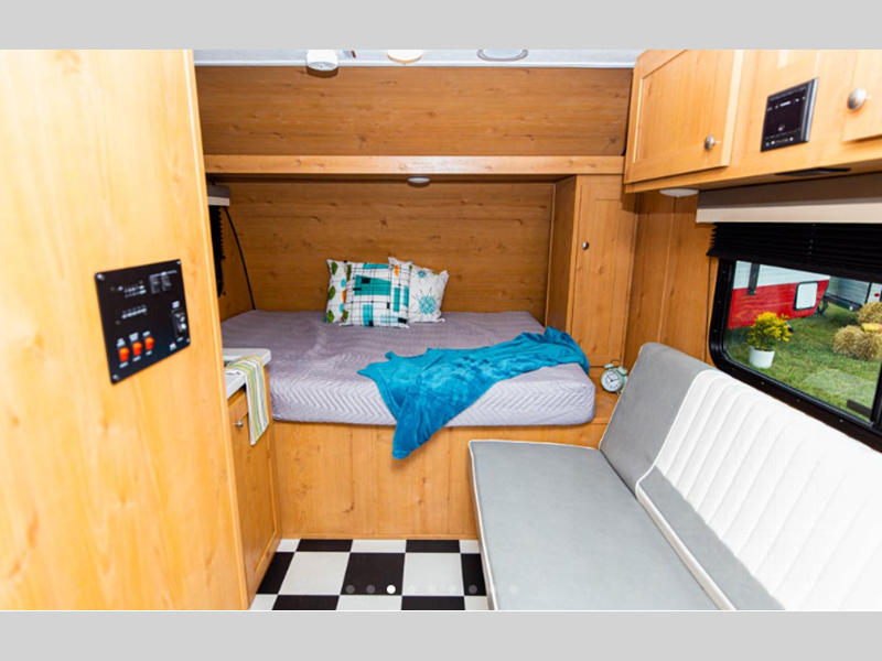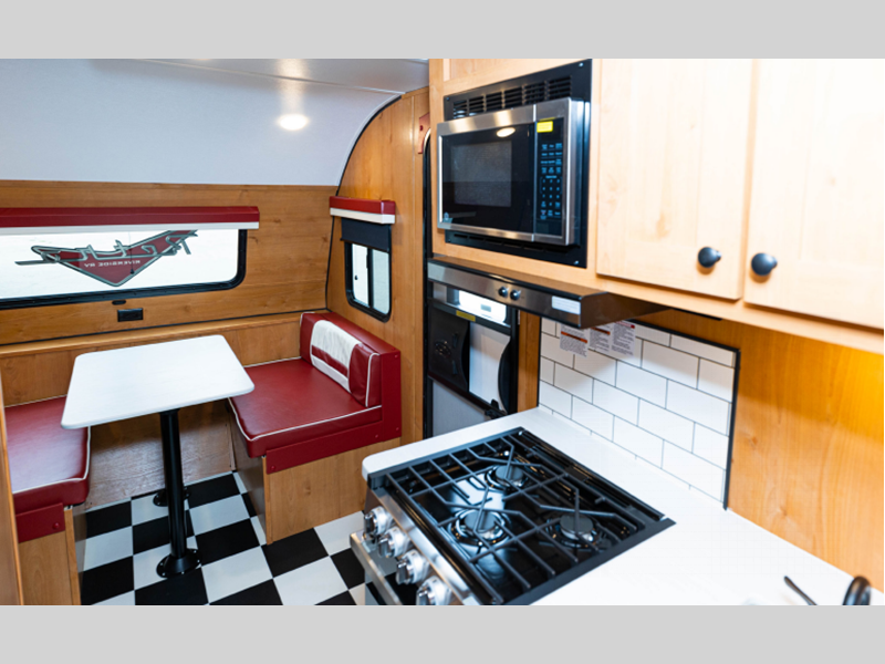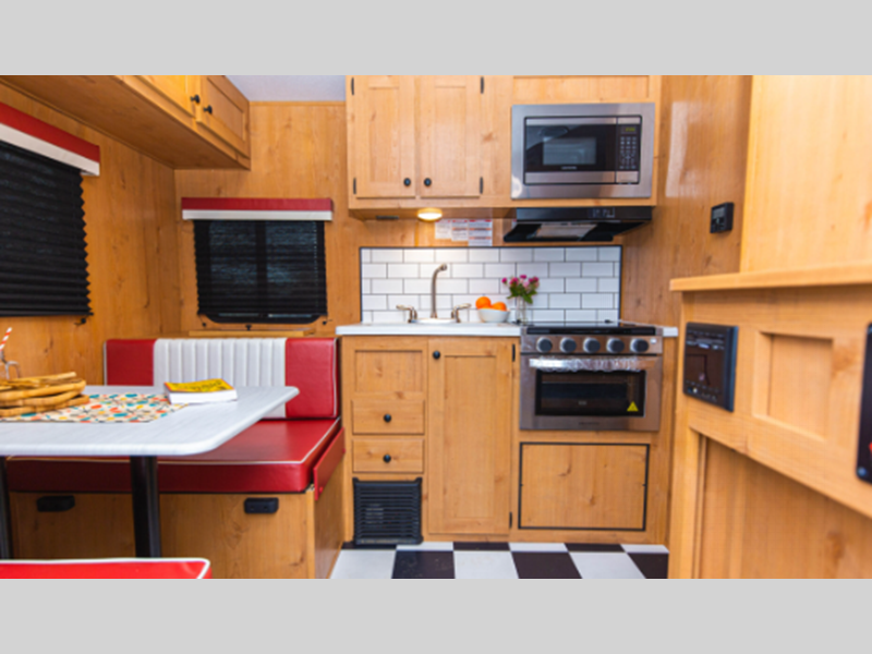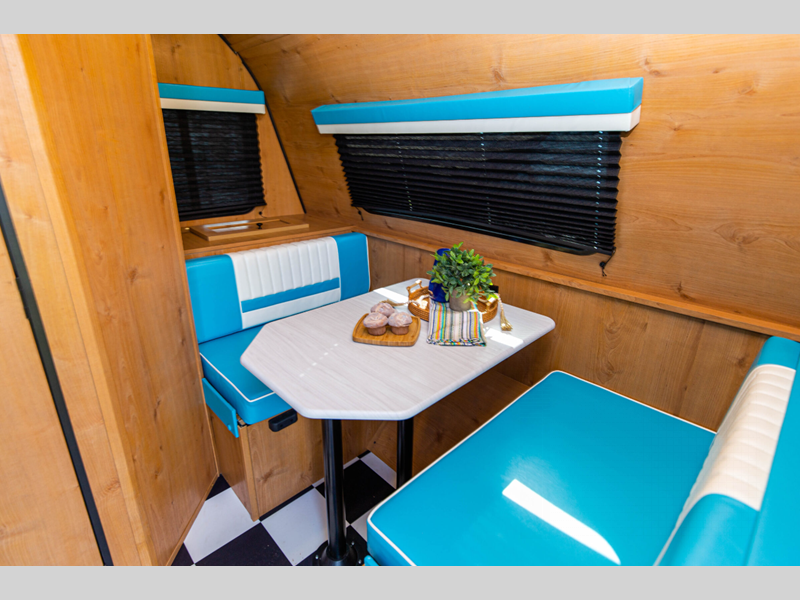 Riverside Retro travel trailer 135 highlights: Sleeps Three Sofa with a Table ... more about Retro 135