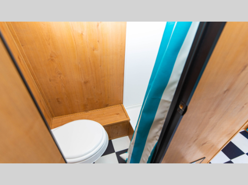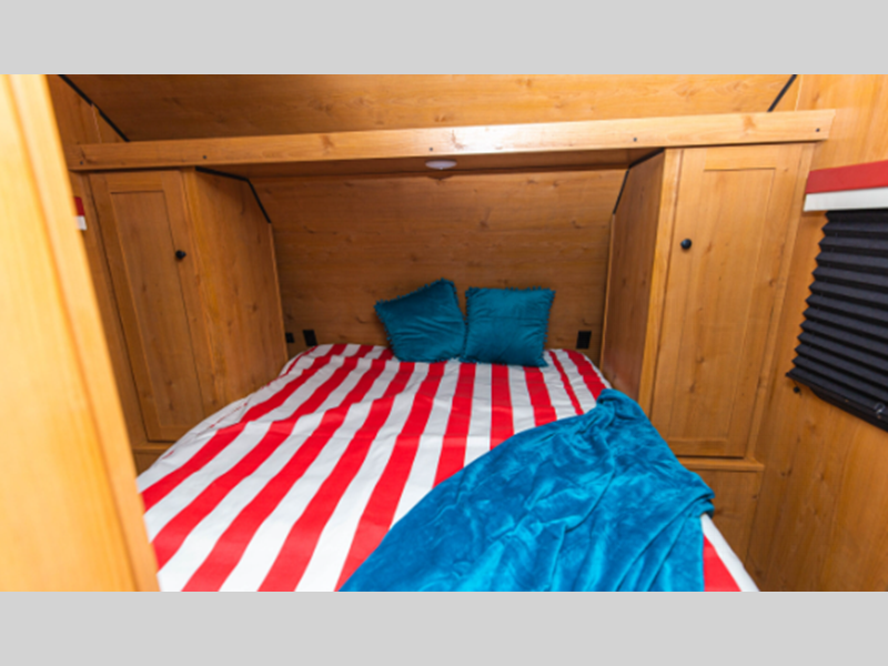 Your first glance of the exterior will take you back in time with its teardrop RV shape and smooth curves. There are durable construction materials, including reinforced galvanized steel wheel wells, 3/8" decking for a full walk-on roof, and 5/8" tongue and groove plywood floor. Some of the updated features you'll enjoy are the roller blinds, upgraded black faucets, larger cargo doors, a friction hinge entry door, and more!