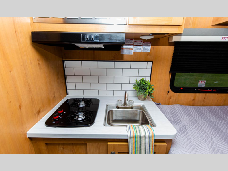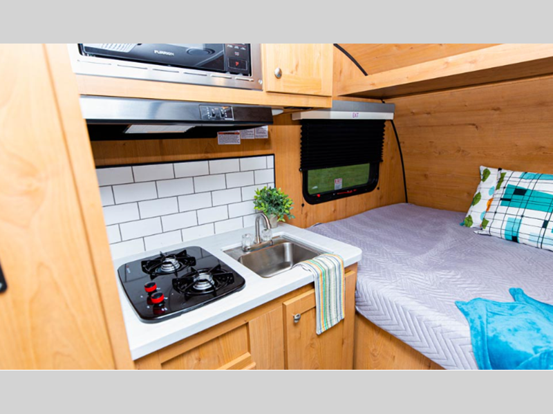 Sleeps 2 Length 12 ft 8 in Ext Width 7 ft 4 in Ext Height 8 ft 2 in Int Height 4 ft 10 in Hitch Weight 140 lbs Dry Weight 1540 lbs Cargo Capacity 2100 lbs Fresh Water Capacity 17 gals Tire Size 15" Furnace BTU 20000 btu Refrigerator Type 12V Cooktop Burners 2 Number of Awnings 1 Axle Weight 3500 lbs LP Tank Capacity 20 lbs Water Heater Capacity 6 gal Water Heater Type Gas/Electric AC BTU 15000 btu Awning Info 6' Power w/LED Light Axle Count 1 Number of LP Tanks 1 Similar Floorplans