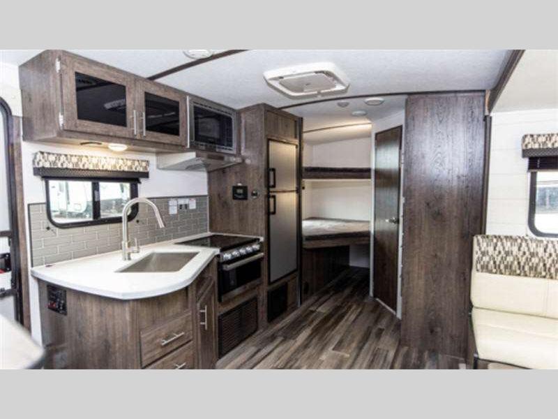 Sleeps 3 Length 20 ft 3 in Ext Width 8 ft Ext Height 10 ft 1 in Int Height 6 ft 5 in Interior Color Kolding Gray Hitch Weight 440 lbs Dry Weight 3220 lbs Cargo Capacity 1200 lbs Fresh Water Capacity 36 gals Grey Water Capacity 36 gals Black Water Capacity 30 gals Tire Size 15" Furnace BTU 20000 btu Available Beds RV Queen Refrigerator Type 12V GE Cooktop Burners 3 Number of Awnings 1 Axle Weight 4000 lbs LP Tank Capacity 20 lbs Water Heater Capacity 6 gal Water Heater Type Gas/Electric AC BTU 15000 btu Awning Info 11' Power w/LED Light Axle Count 1 Number of LP Tanks 2 Shower Type Standard Electrical Service 30 amp Similar Floorplans