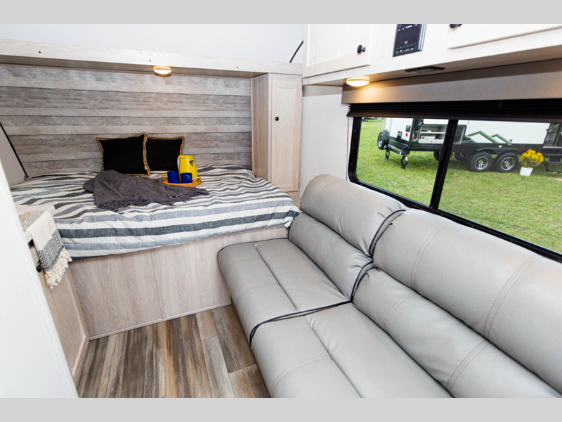 Riverside RV Xplorer travel trailer 135X highlights: Overhead Cabinets Sofa 12V ... more about Xplorer 135X